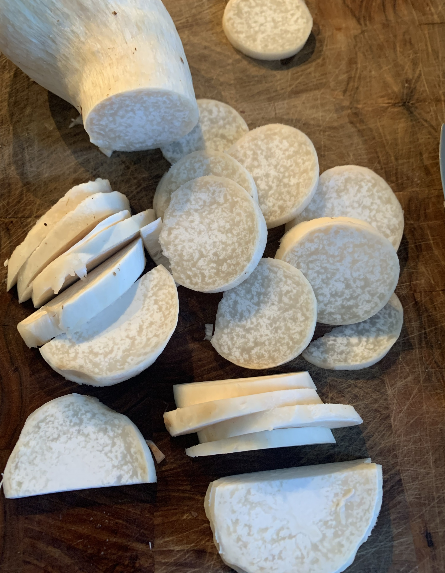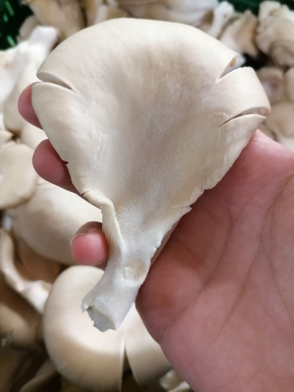 Alle Pilze bestehen aus unzähligen mikroskopisch kleinen Fäden, die sogenannten Hyphen. Einzelne dieser Hyphen lassen sich mit dem bloßen Auge gar nicht sehen, aber in Ihrer Gesamtheit bilden sie dichte Netze, die wir als (Schimmel-)Pilzflaum erkennen und dann Myzel genannt werden. Das Myzel eines Champignons oder Austernseitlings wächst unter und überirdisch auf einem Substrat. Den Teil der Speisepilze, den wir essen, nennt man Fruchtkörper und dieser dient dem Pilz zur Fortpflanzung. Die Bildung dieser weißen Myzelschicht ist in der Pilzzucht praktisch nicht zu verhindern, da die Pilze in Regalen übereinander angebaut werden und die Sporen somit von höherliegenden Pilzen leicht auf die darunter liegenden gelangen. Die Myzelien beeinträchtigen weder die Qualität noch den typischen aromatischen Geschmack der Pilze. Es kann mit einem trockenen Tuch einfach abgewischt oder direkt mitgegessen werden.