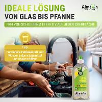Ein Spritzer (2 ml) ins Spülwasser genügt. Nur bei sehr fettigen Pfannen und Töpfen sollte höher dosiert werden.Für die manuelle Geschirrreinigung. AlmaWin Spülmittel bitte sparsam dosieren.