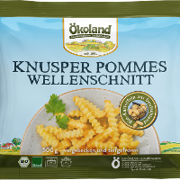 Genießen Sie die Ökoland Pommes in 100% Ökoland-Qualität. Der spezielle Wellenschnitt garantiert Ihnen ein besonders intensives und knuspriges Geschmackserlebnis. Die Pommes sind aus ganzen Bioland-Kartoffeln frisch geschnitten. Sie sind vorgebacken und ungesalzen für eine individuelle Würzung. Nach Bedarf portionierbar.Ob als Beilage oder klassisch als Mahlzeit mit Ketchup oder Mayonnaise - die Ökoland Knusper Pommes lassen sich vielfältig servieren.Hinweis: Dextrose führt zu einer gleichmäßigen Farbgebung, die zugesetzte Menge entspricht den im Waschvorgang verlorenen Kohlenhydraten.