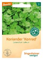 Der würzige Blattkoriander gedeiht gut, wenn er früh im Jahr oder erst wieder ab August ausgesät wird. Er braucht ein sonniges, gut gelockertes Beet, dass auf keinen Fall frisch gedüngt sein darf - sonst droht Blattlausbefall. Die frischen Blätter können nach ca. 4-6 Wochen geerntet werden. Man kann ihn auch bis zur Blüte stehen lassen und die Samen ernten. Koriander sät sich gerne selbst aus. Hat er sich einmal im Garten etabliert, wächst er Jahr für Jahr ganz unkompliziert.TIPP: Für eine durchgehende Ernte der Blätter alle drei Wochen aussäen, spätere Aussaaten beschatten und gut feucht halten.