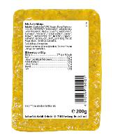 SOJABOHNEN* 59 %, Wasser, Mango* getrocknet 6,1 %, Limettensaft*, Rübenzucker*, kaltgepresstes Sonnenblumenöl*, Meersalz, Curry* 1,0 %