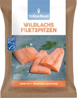 MSC Wildlachs Filetspitzen, ohne Haut, praktisch grätenfrei, portioniert, tiefgekühlt mit Wasserschutzglasur.