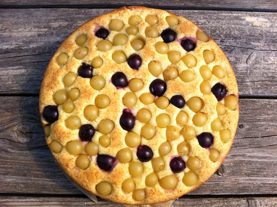 Die Trauben waschen und abtrocknen. Die zimmerwarme Butter schaumig rühren, den Zucker, Salz und Zitronenabrieb unterrühren. Die Eier einzeln unterschlagen. Das Mehl mit Backpulver gemischt im Wechsel mit der Milch unterrühren. Der Teig sollte weich vom Löffel fallen. In der Springform verteilen, mit den Trauben belegen und auf zweiter Schiene von unten im vorgeheizten Ofen 30-35 Min. backen.